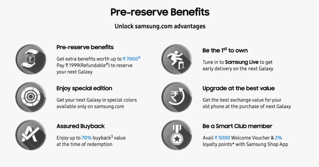 Interested customers can pre-reserve the upcoming devices from Samsung on the company’s official website and exclusive stores, Amazon, Flipkart, and leading retail stores across the country. Those pre-reserving have to buy a VIP pass of Rs 1,999. It will be sent to your registered email and mobile number.