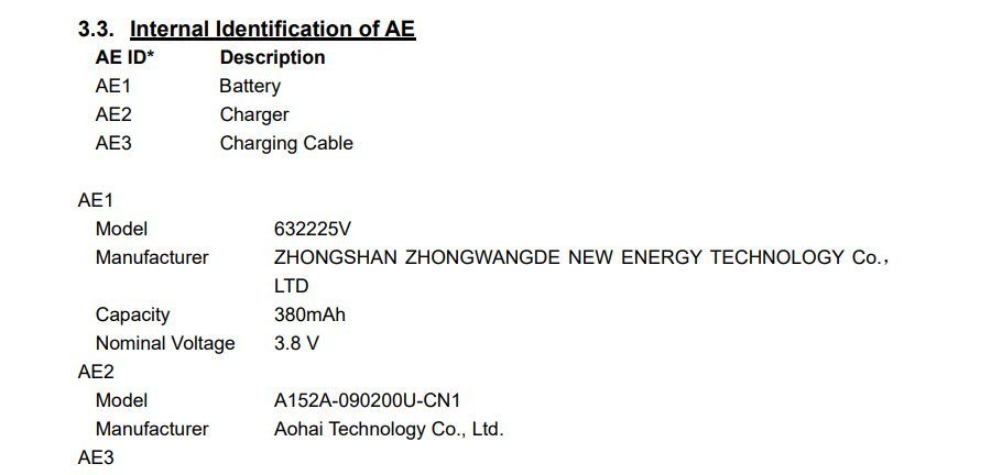 The listing, with model number RMW2401 and FCC ID 2AUYFRMW2401, reveals some details about the upcoming wearable. The Realme Watch S2 appears to be equipped with a 380mAh battery which is slightly smaller than the 390mAh battery in its predecessor. The charger has a model number A152A-090200U-CN1 suggesting the smartwatch might support 5W charging.