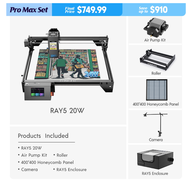 Laser Ray5 20W Pro Max Set: $749.99 (Save $910)