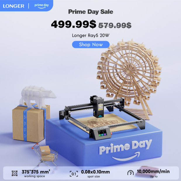 This Prime Day, embrace innovation and precision with the LONGER Ray5 20W Laser Engraver. Whether you’re looking to enhance your crafting capabilities, create personalized gifts, or delve into professional-grade projects, the Ray5 20W offers unmatched versatility and quality.