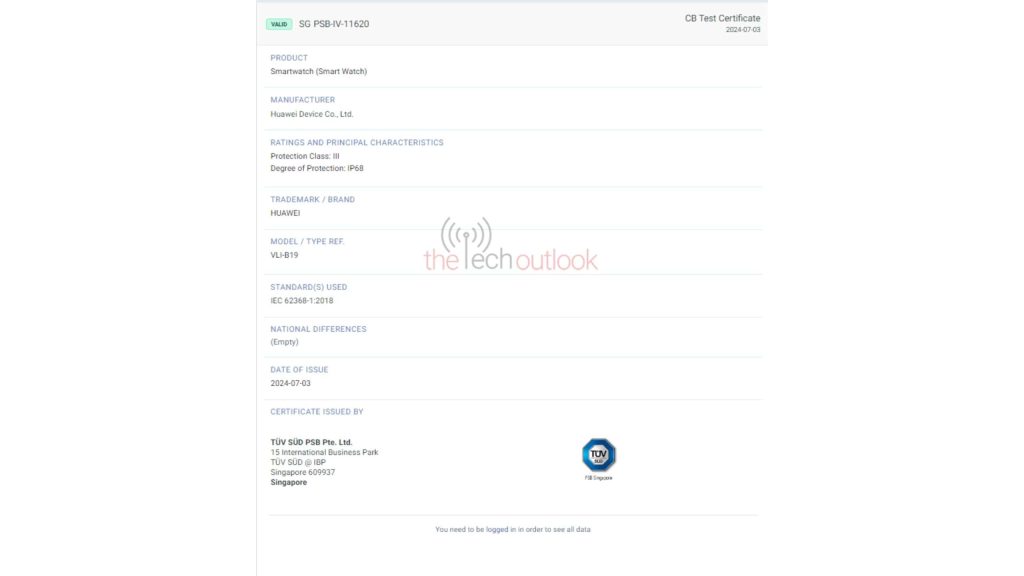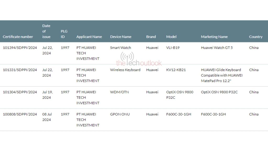Huawei Watch GT 5 has appeared in multiple certifications, including Indonesian SDPPI and TUV, indicating a global launch and availability in the Indonesian market as well. The watch has the model number “VLI-B19” and will feature IP68 rating.