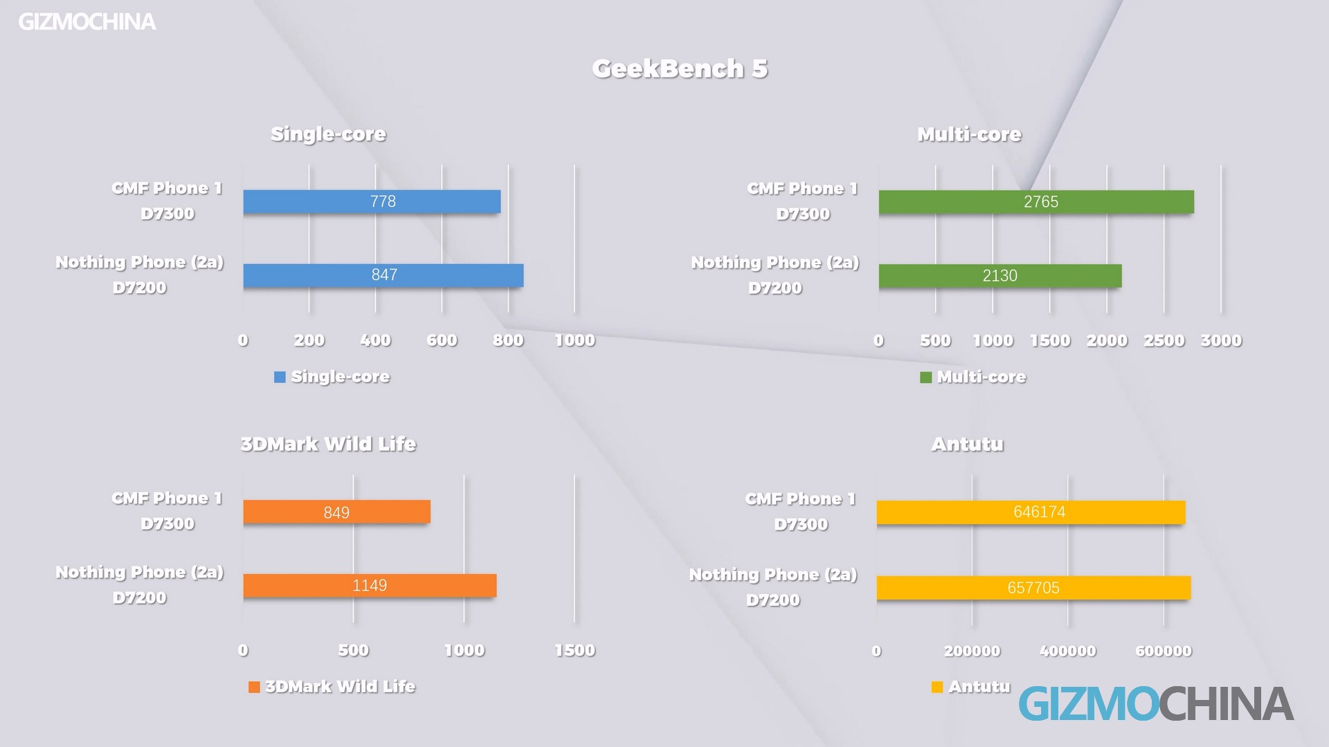 The CMF Phone 1 uses a Dimensity 7300 processor, which is slightly weaker than that Dimensity 7200 in the Nothing Phone (2a). Yes, you heard it right, 7300 is weaker than 7200, that’s what MediaTek’s math teacher taught him. By the way, Qualcomm’s English teacher did the same thing, The Snapdragon 8s Gen 3 is weaker than the 8 Gen 3. Am I crazy, or is the world crazy?