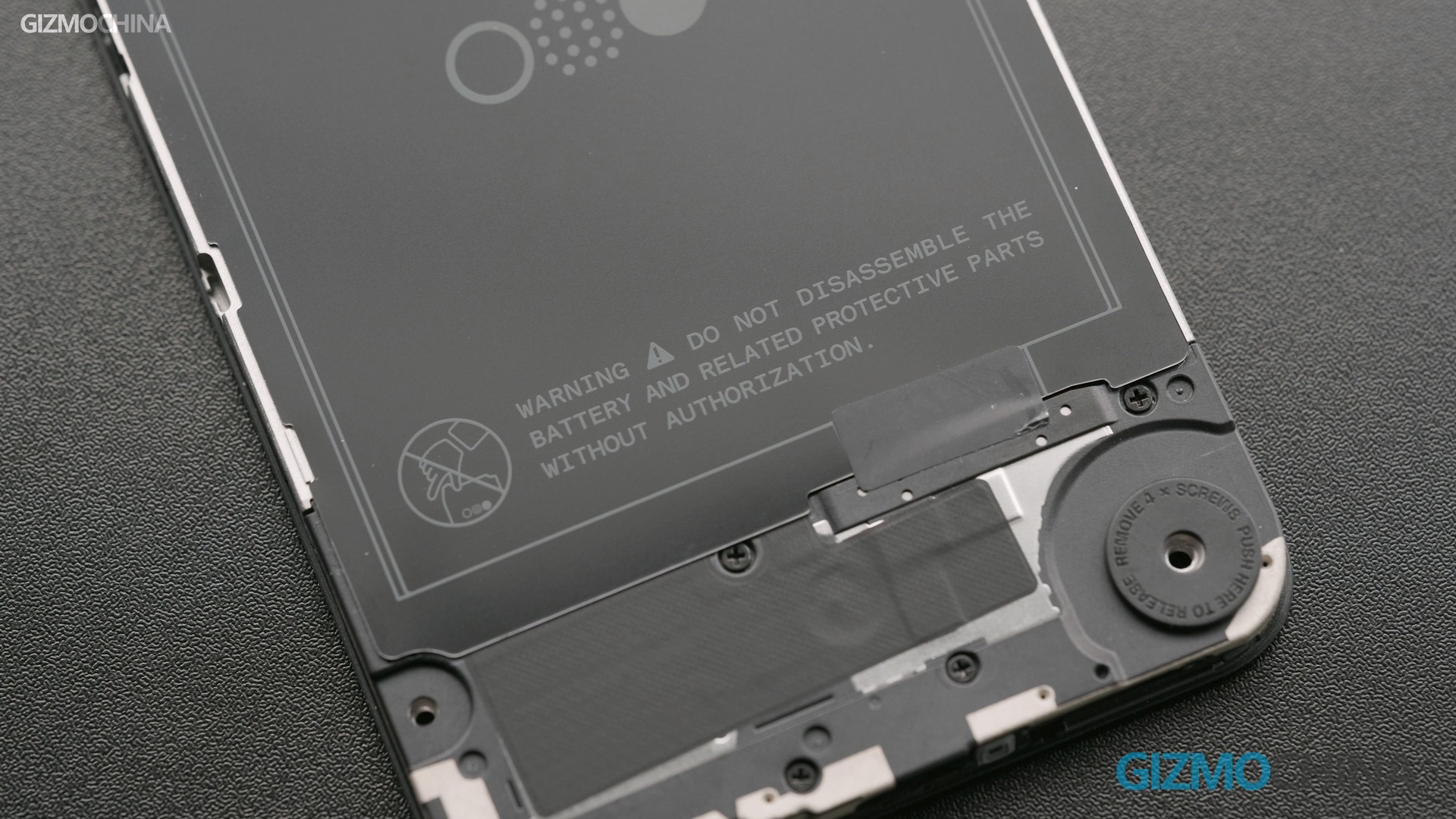 Removing the back cover of the CMF Phone 1, you can see that it’s so different from others. To prevent you from removing parts, the motherboard is covered with a plate or tape. There’s also a warning not to remove the battery and related protective components by yourself.
