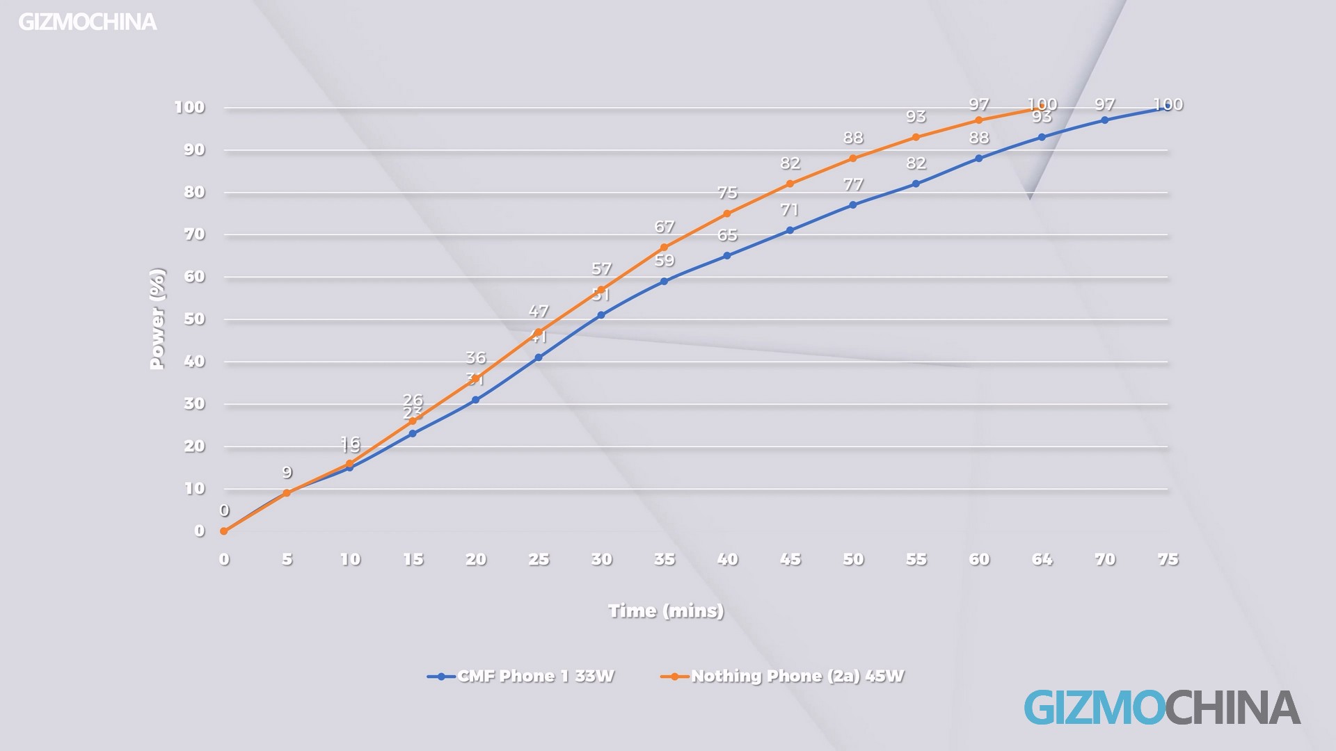 The CMF Phone has a 5000mAh battery, wired charging power up to 33W, and no wireless charging. It’s acceptable at the $250 price point, the power is not too big or small, charging speed will not be too fast or too slow. The battery life is even a little better compared to its brother 2a.