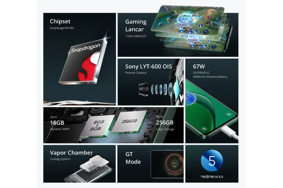 The SoC is paired with 8GB of RAM and up to 256GB of storage and there’s also support for virtual RAM expansion, allowing users to add an additional 8GB for a total of 16GB. Thermal management will be handled through a vapor chamber cooling system. On the software side, the Realme 13 will run Realme UI 5 based on Android 14.