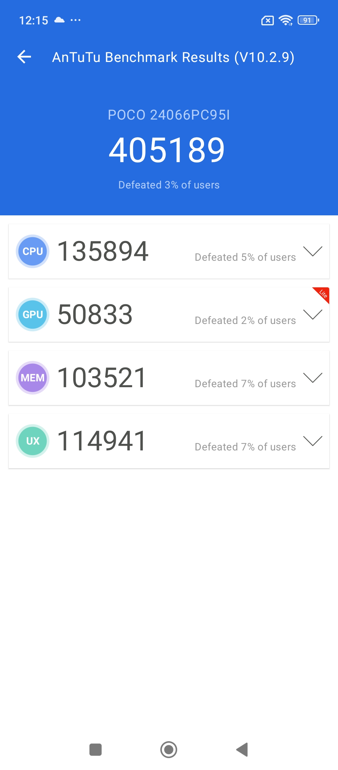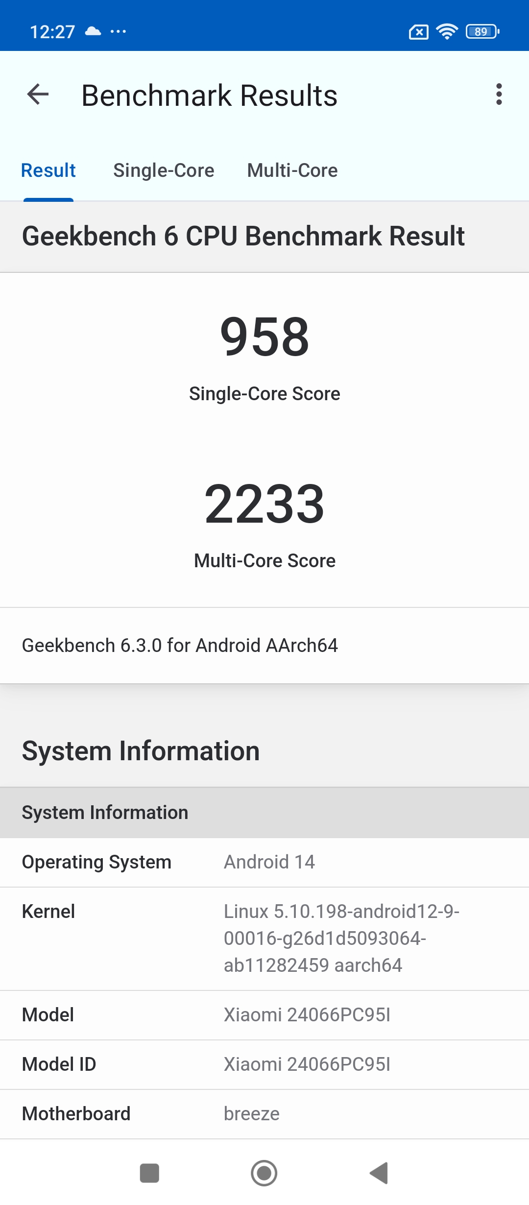 The Poco M6 Plus is equipped with a substantial 5,030mAh battery and supports 33W fast charging. Charging the battery from 0% to 100% takes approximately 1 hour and 5 minutes. With normal usage, the phone easily lasts a full day on a single charge, making it a reliable option for users who need long-lasting battery performance. Here is how the M6 Plus performed on the benchmarks apps.