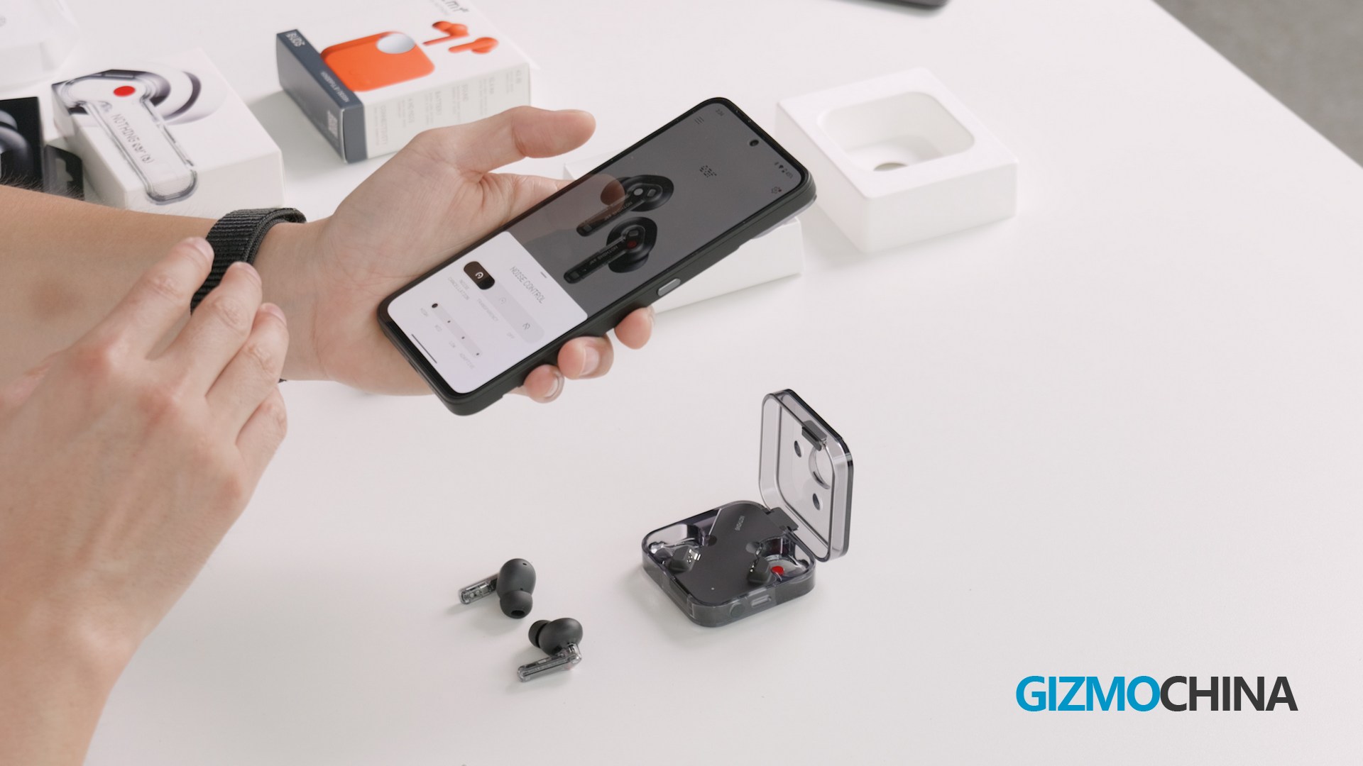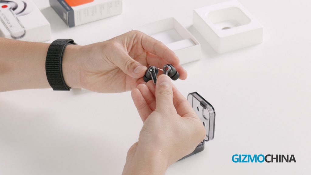 And for the beans themselves, they are quite similar, Now let’s put them on to see the wearing comfort. I cannot feel anything wearing them. So now I’ve connected the earbuds to the NothingX app. And as you can see, there’s only one level of noise canceling in here, but you’re still not missing the transparency mode.