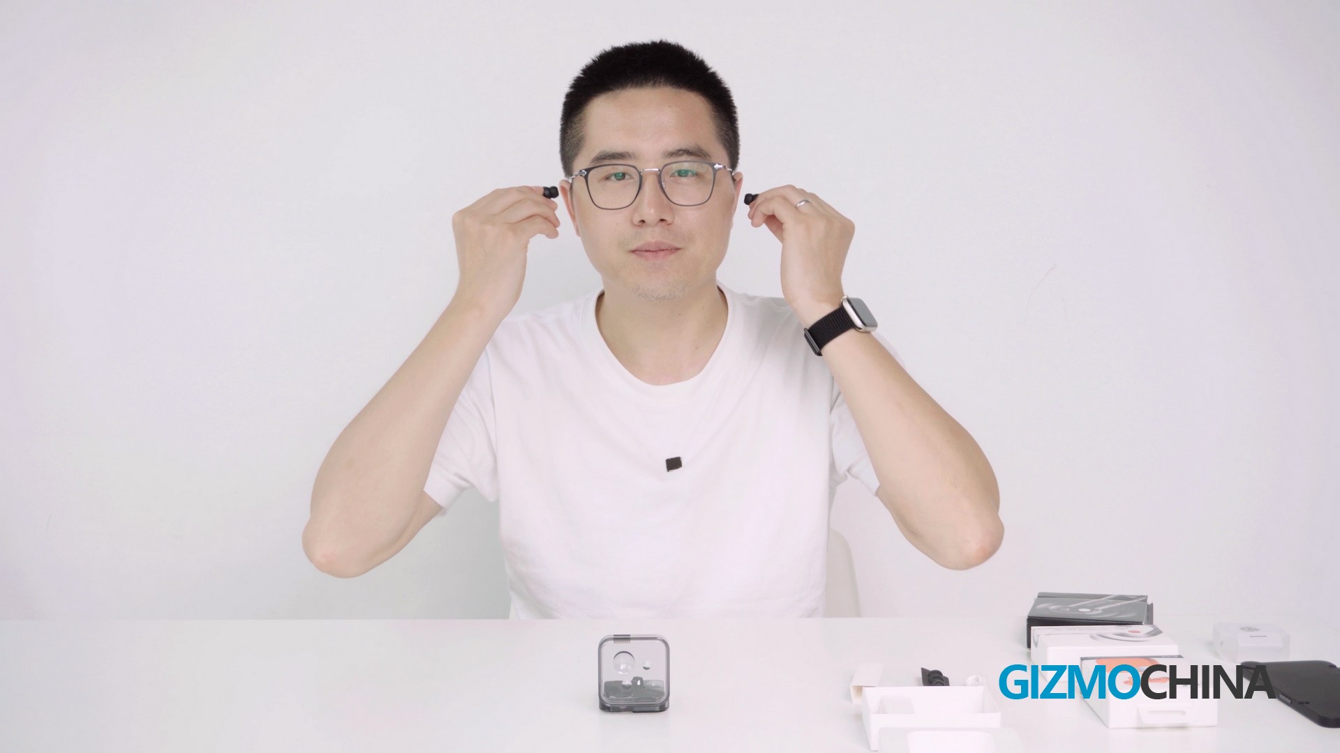So yeah, let’s put them on. All right. I think the wear and comfort is quite good because they are not long, they are not dragging your ears down,and also the stem is not in the way actually. And even they are not paired up with the phone, the noise cancelling is kicking in. Now let’s try to pair them to the app to see what will happen.