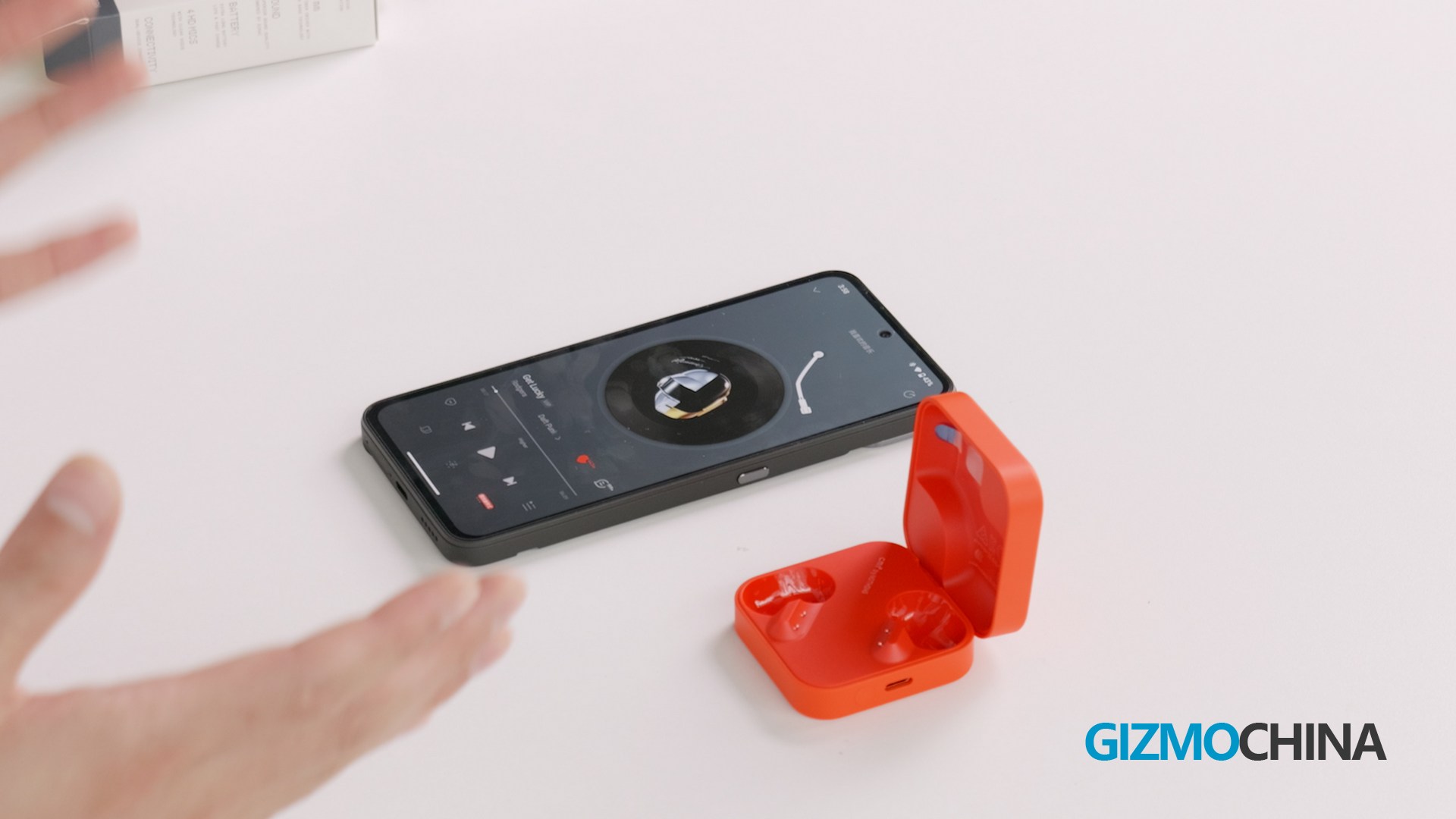 Let’s open it up. Right up, you can see that they share a very similar design with the nothing ear. And compared to that one, other than the difference in the cases, this one has moved the button inside the case. All right, let’s take them out.