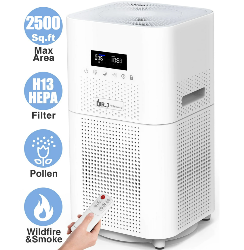 DR. J Professional HEPA Air Purifier is designed to deliver efficient air cleaning for large rooms up to 2500 sq.ft, making it ideal for homes with allergies, asthma, pet dander, smoke, and other air quality concerns.