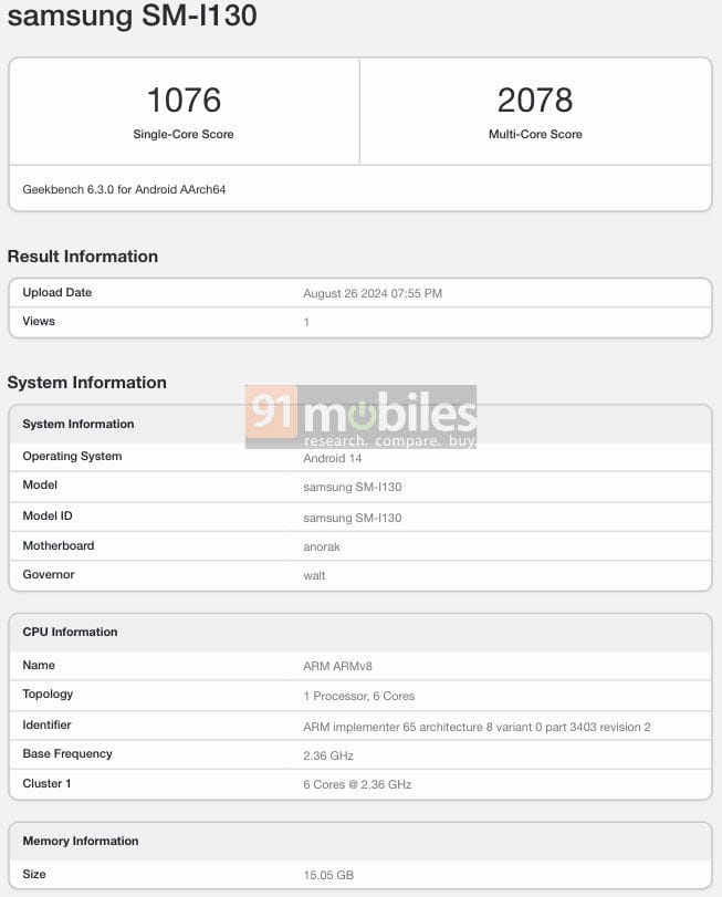 In addition to that, the Geekbench listing reveals that the device runs on a base frequency of 2.36GHz, which is also close to the 2.4 GHz clock speed of the chipset. While