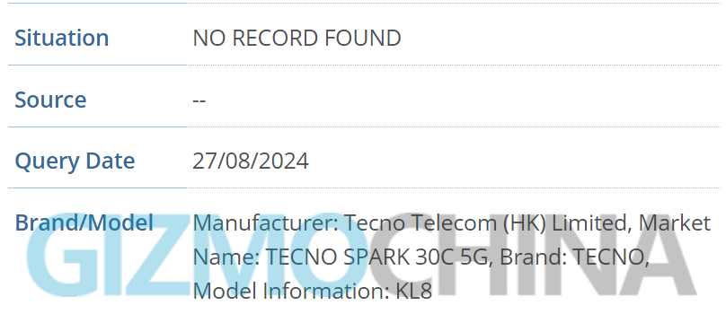 Tecno wants to increase competition in the affordable smartphone market. The company will soon launch the affordable Tecno SPARK 30C series. Gizmochina has spotted 2 new smartphone models of the SPARK 30C series. The Tecno SPARK 30C series consists of two models: SPARK 30C 4G and SPARK 30C 5G. The model numbers of these devices have been detected in the IMEI database. The Tecno SPARK 30C 4G has the model number KL5, while the Tecno SPARK 30C 5G has the model number KL8.