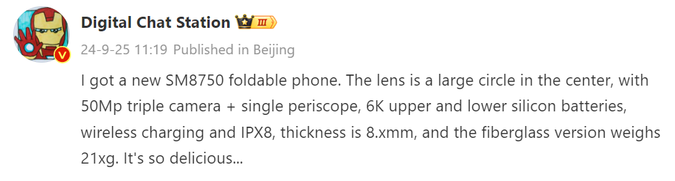 In the recent leak, tipster Digital Chat Station mentioned an upcoming foldable phone powered by the SM8750, which is nothing but the upcoming Snapdragon 8 Gen 4 chipset. Recent leaks have indicated that both the Oppo Find N5 and the Vivo X Fold 4 are expected to feature the SD8G4 SoC.