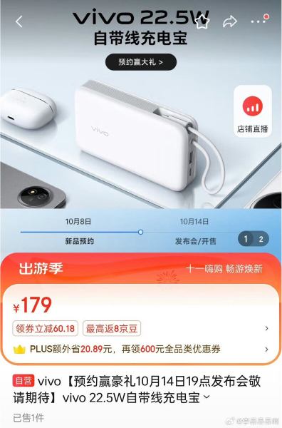 The second power bank appears to offer a more modest 22.5W fast charging option. While the leaked image doesn’t confirm the capacity, it could likely be around 10,000 mAh – a standard size for powerbanks of this wattage range. This more portable option is listed at CNY 179, which translates to approximately $25.50.