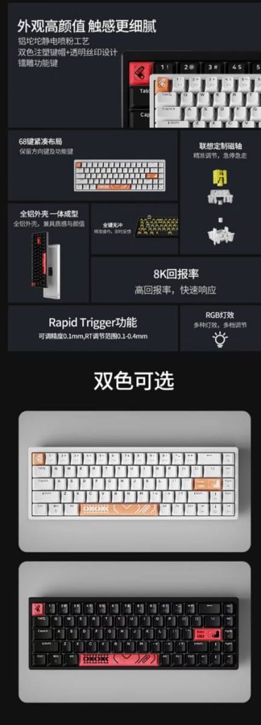 The K6 is built on Lenovo’s custom magnetic axis switches. These switches are claimed to have an 8K return rate for fast response times and a Rapid Trigger function that reduces pre-travel time for improving reaction speeds in games.