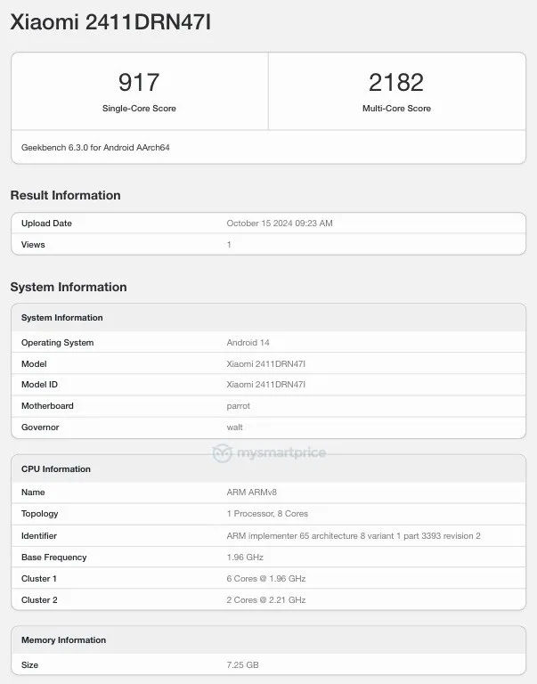 Redmi 14C 4G was launched in August this year with the Helio G81 Ultra. Now the 5G version of the phone has surfaced on Geekbench with a new chip that scores 917 and 2182 in the single and multi-core tests respectively.