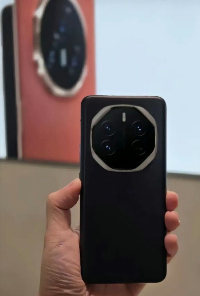 The standout feature on the back is the camera module—an octagonal island with a silver or gray border. The render shows one with a gold frame as well.