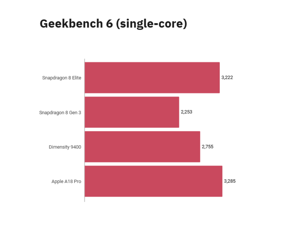 The Snapdragon 8 Elite is significantly ahead of the Snapdragon 8 Gen 3. However, it couldn’t defeat the Apple A18 Pro, though it handsomely leaves behind the MediaTek Dimensity 9400.