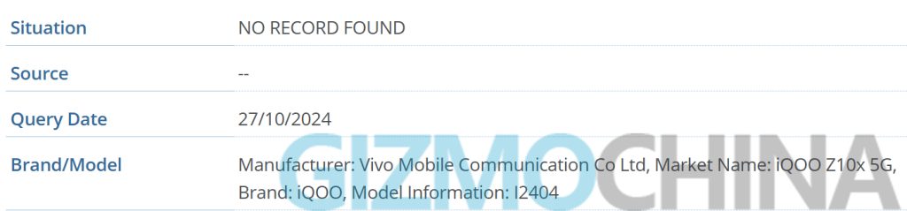 iQOO Z10x 5G appears with the model number l2404. The specifications of the device are not yet known. However, we can make some predictions by looking at the specifications of the previous model iQOO Z9x 5G.