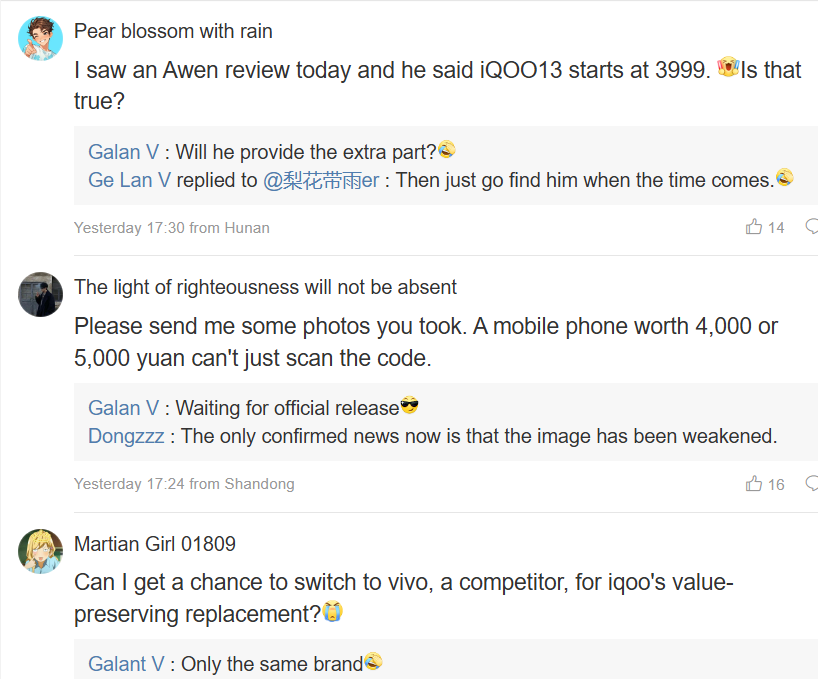 According to the product manager, production costs for the iQOO 13 have risen by several hundred yuan, making a price increase inevitable. In a recent interaction with users on Weibo, he explained that setting the price below 3,999 yuan was no longer feasible due to these higher costs.
