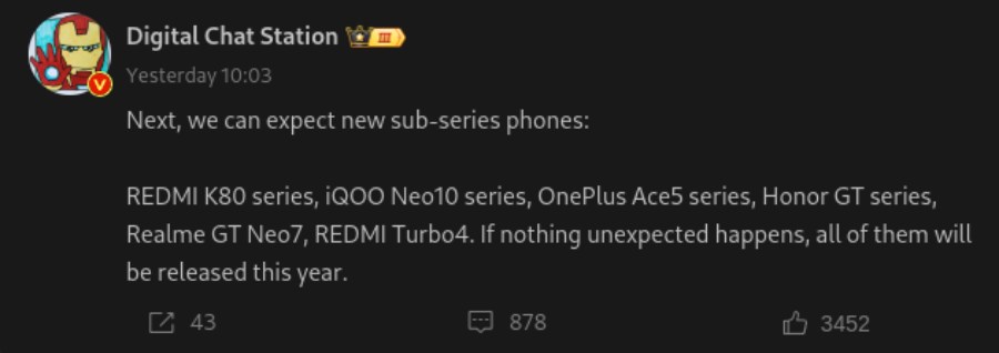 Leading this wave are brands like Redmi and iQOO. Redmi will launch two phones in its K80 series, the K80 and K80 Pro, later this month. According to reports, the Redmi K80 and Redmi K80 Pro will feature the Snapdragon 8 Gen 3 and Snapdragon 8 Elite chipsets, respectively.