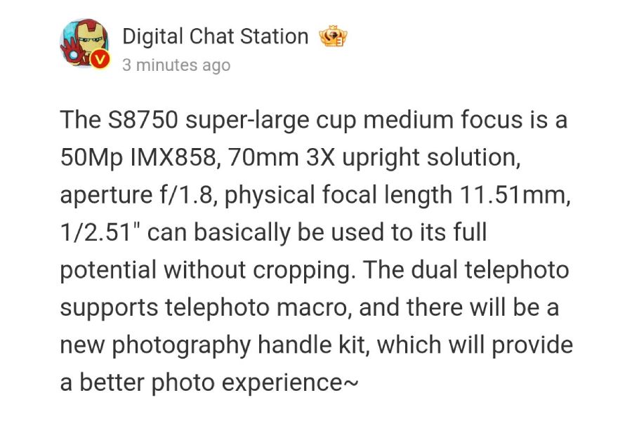 According to DCS, the phone’s dual telephoto camera will support telephoto macro mode and there will be a new camera kit to further improve the photography experience. Rounding out the camera setup will be a 50MP ultrawide sensor.