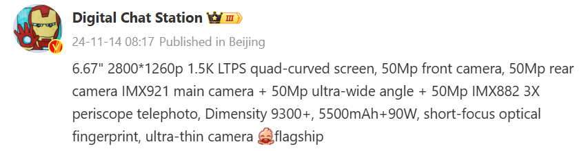 Under the hood, the S20 Pro will feature the Dimensity 9300 Plusv chipset and a 5,500mAh battery with 90W fast charging support. An optical-type in-screen fingerprint sensor will also be a feature of the device. Like the S20, the S20 Pro is expected to sport a thin and lightweight design.