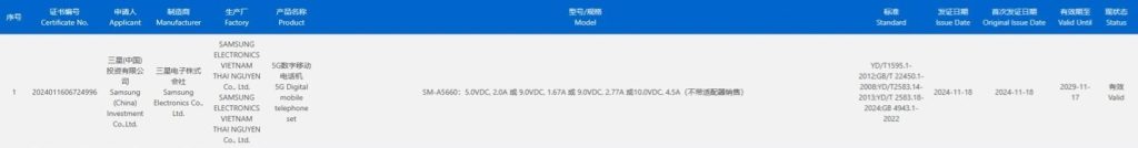 Samsung’s upcoming Galaxy A56 5G has been listed on China’s 3C certification website, offering key insights into its charging capabilities. As a successor to the Galaxy A55 5G, the A56 5G will introduce significant upgrades, including support for faster charging, better performance, and possible camera enhancements, making it another exciting addition to Samsung’s mid-range lineup.