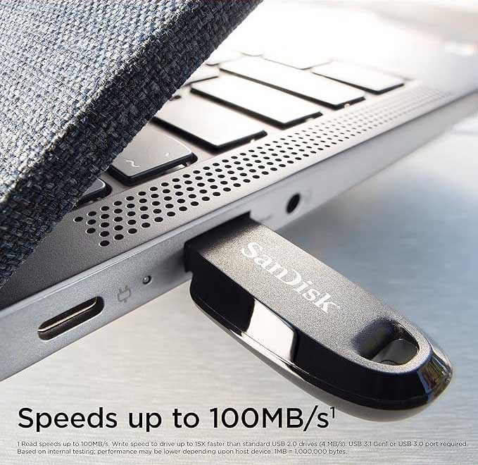 Amazon offers the SanDisk Ultra Curve USB 3.2 64GB variant for just ₹429. This is the latest model in the SanDisk Ultra Curve USB 3.2 flash drive series. The read speed of the flash drive is 100 MB/s, and the write speed is 20 MB/s, which is up to 15X faster than the standard USB 2.0 variant. However, to achieve that writing speed, one must have a USB 3.1 Gen1 or USB 3.0 port. It is one of the best flash drives available in the market. The SanDisk Ultra Curve USB 3.2 64GB variant is normally priced around ₹499.