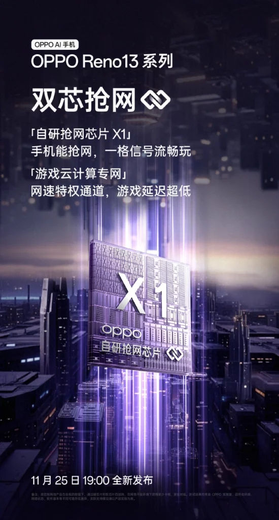 Oppo is gearing up to launch the Reno 13 series on November 25 at 19:00, unveiling a lineup that promises to redefine connectivity and gaming performance. Weibo tipster Digital Chat Station recently talked about the company’s development of a custom networking chip, and now the company confirms its use in the upcoming Reno 13 series.