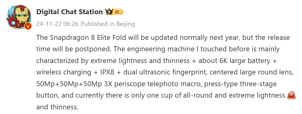 The above leak also suggests that there will be only one version of the phone. While Vivo launched the X Fold 3 and X Fold 3 Pro this year, the company may only release one foldable phone, the X Fold 4, powered by the Snapdragon 8 Elite next year.