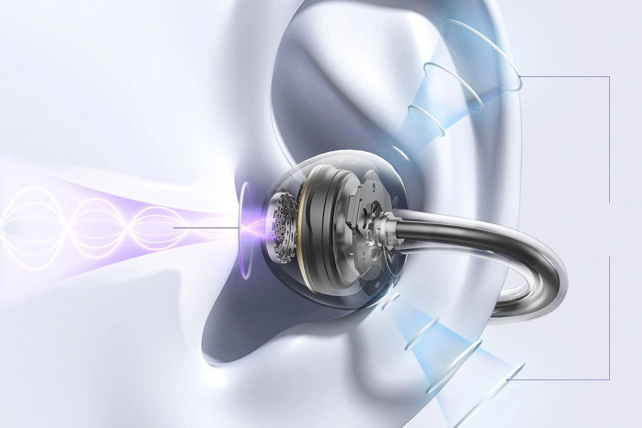 Each earbud weighs just 5.1 grams and comes in Phantom Night Black or Monet Purple. They sport an “apple” shape, wider at the top and narrowing toward the bottom, and use directional sound transmission technology to reduce sound leakage. The charging case mirrors the earbuds’ design and allows for easy single-handed opening and closing.
