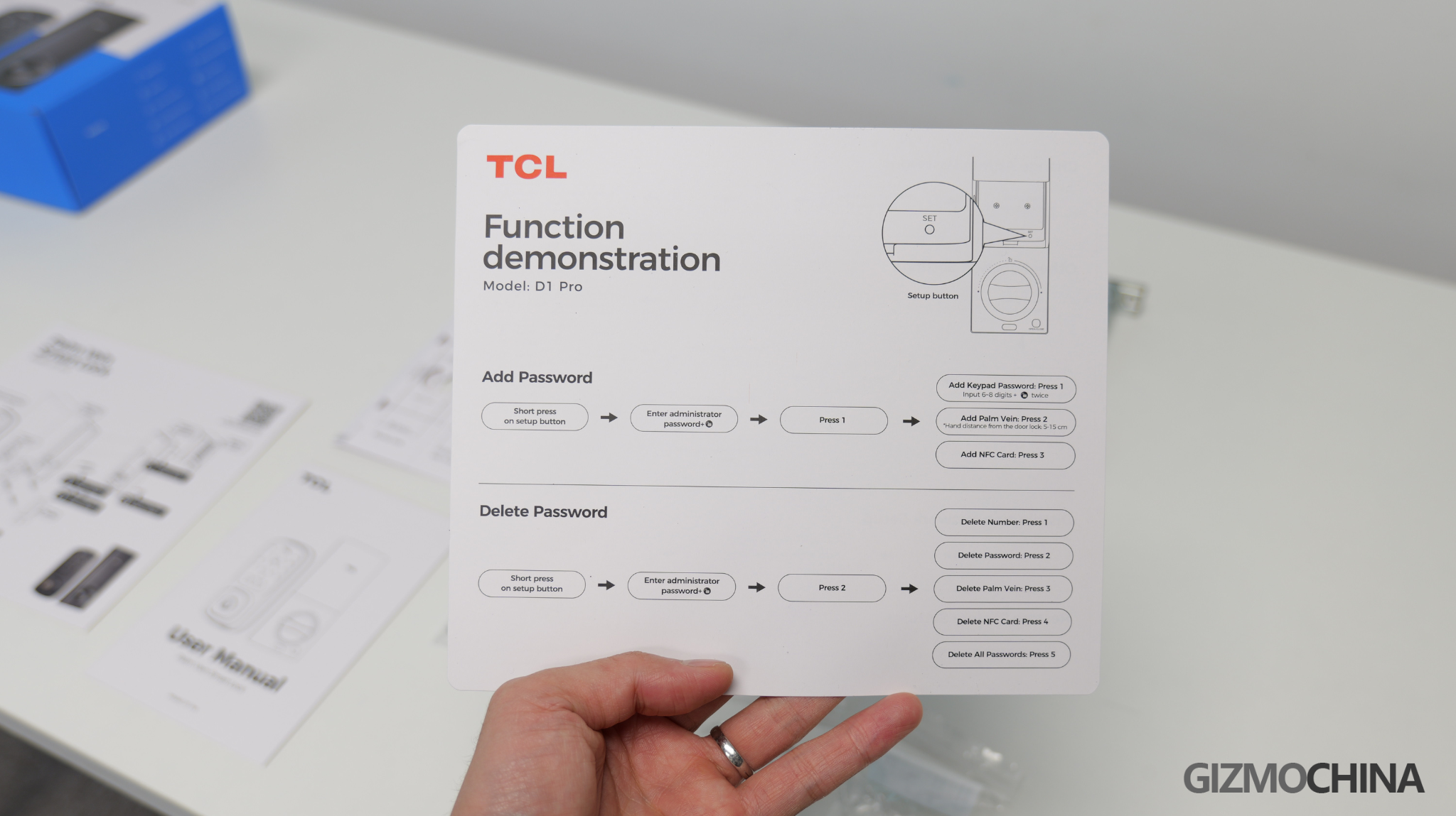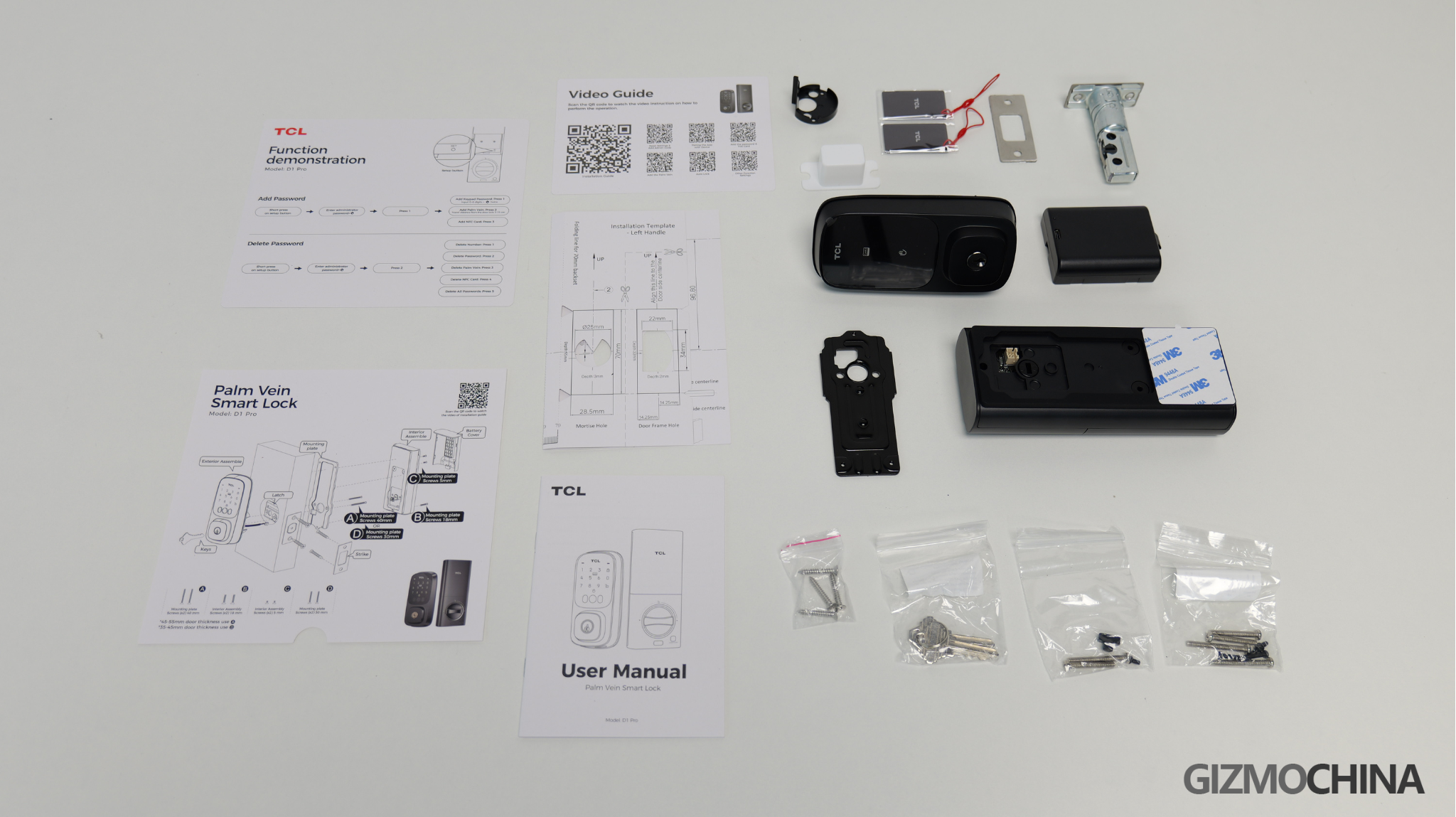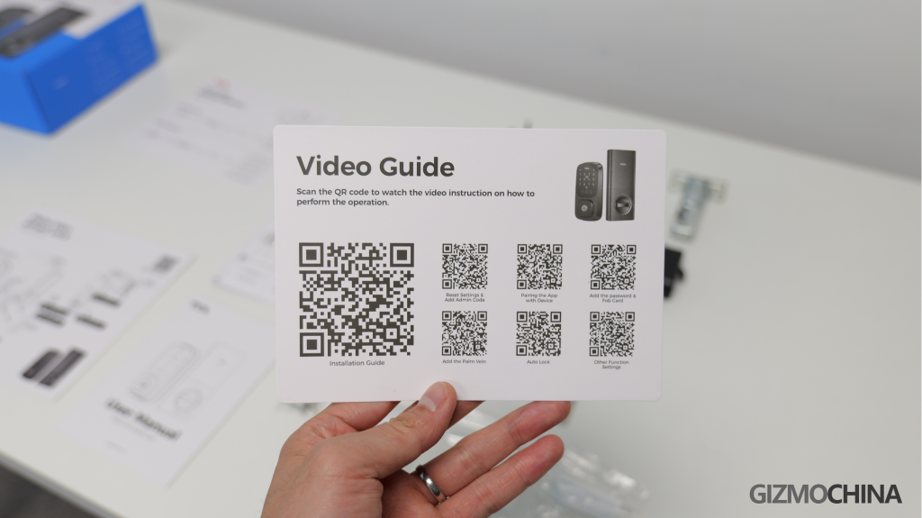 You have all the components to put it on the door, or replace your old lock. One thing we need to give TCL credit is that, there are help guides everywhere. Like the Installation template inside the box, Guides in the box, Customer support info, and also a lot of instructions on the website.