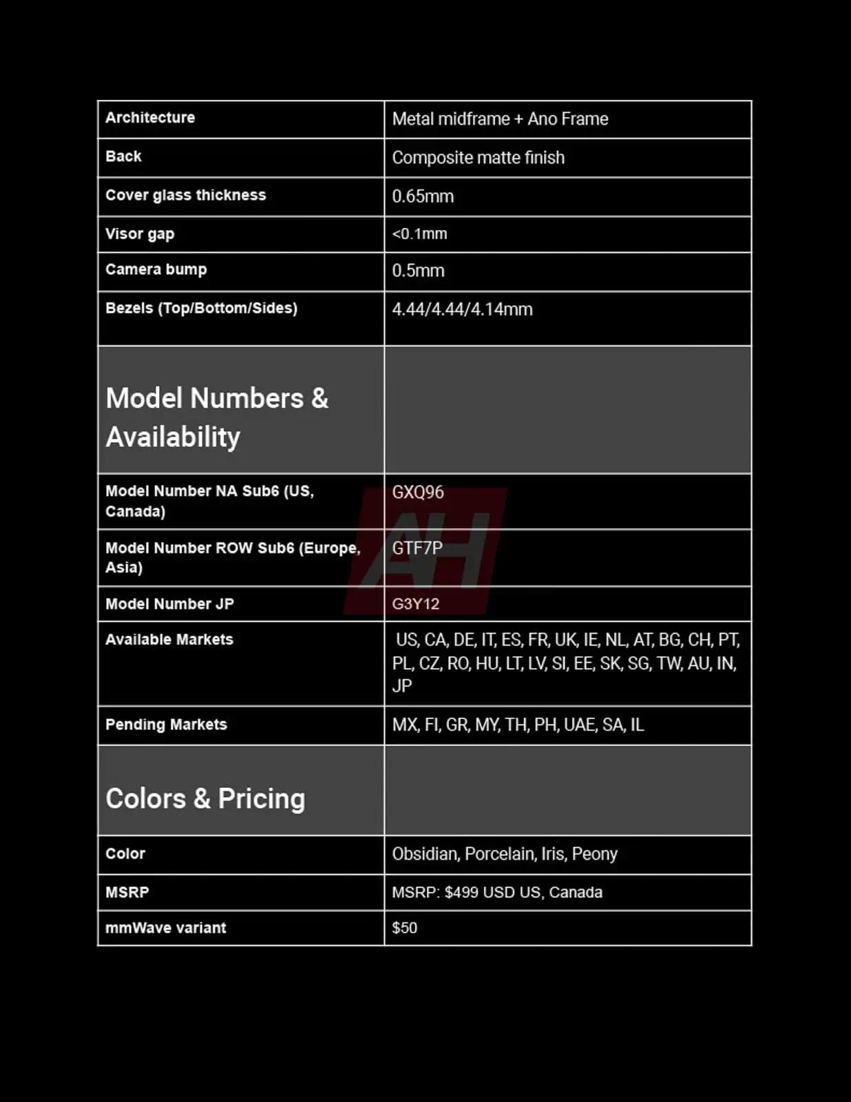 The Pixel 9a will allegedly start at $499 for the 128GB model, with a Verizon-exclusive mmWave variant available for $549. Color options will include Obsidian, Porcelain, Iris, and Peony.