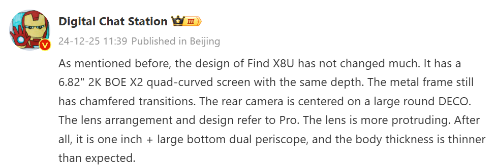 In the above leak, DCS has shared information about the Oppo Find X8 Ultra’s design and mentioned in the comments section that the Find X8 Mini and Ultra models will launch together.