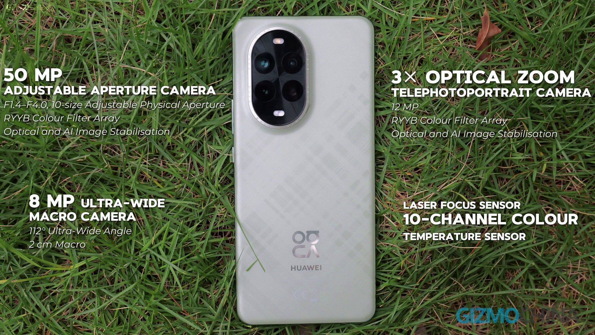 With the metal engraving and the nova logos’ star-array arrangement, the ring’s metallic texture looks even more exquisite. The looks alone are already inspiring enough. However, the second reason I choose to recommend it is its powerful camera performance. The lenses are paired with a 50MP lens with variable apertures, a 3x telephoto portrait lens with OIS, an 8MP ultra-wide-angle macro lens, a laser focus sensor, and a ten-channel color temperature sensor.