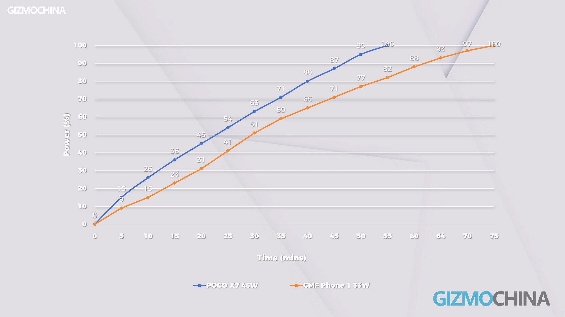 Like the REDMI Note 14 Pro, the POCO X7 has a wired charging power of 45 W. 10 minutes for a 26% charge, and 55 minutes for a full charge. But unlike the Note 14 Pro, the X7’s battery is only 5,110mAh.The battery capacity isn’t shockingly large, but the good news is that the processor is power-efficient enough.