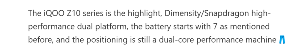 The tipster has previously claimed that the high-performance Z10 series phones with Dimensity and Snapdragon chipsets will pack a battery of around 7,000mAh capacity. Recent reports have revealed that the Z10 Turbo will feature the Dimensity 8400 chip, whereas the Z10 Turbo Pro will have the upcoming Snapdragon 8s Elite chip.