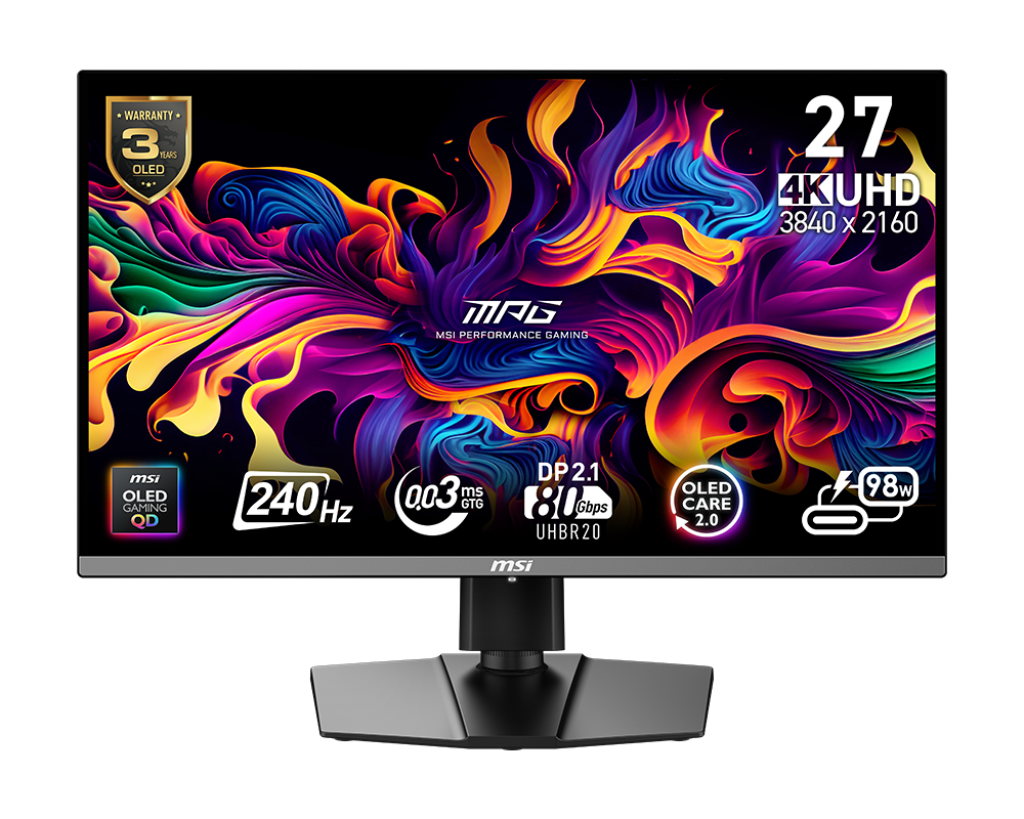 The first-of-its-kind claim comes from a combination of many factors such as the monitor using a 27-inch 4K resolution panel while offering 240Hz refresh rate, and the latest DisplayPort 2.1a interface. These features are also coupled with advanced QD-OLED technology, delivering exceptional picture quality with deep blacks, vibrant colors, and incredibly smooth motion handling, making it a good choice for competitive and triple-A gaming.