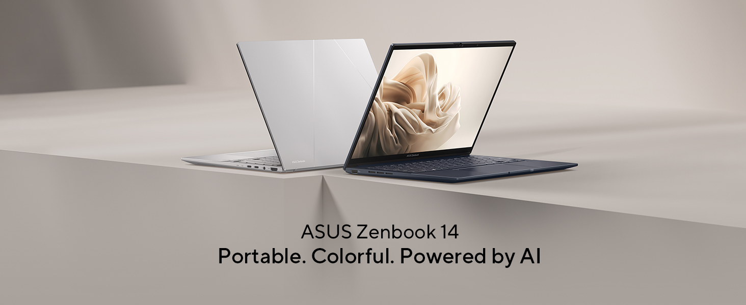 The Zenbook 14 is a premium ultraportable laptop with a 14-inch 3K OLED NanoEdge display, a 120Hz refresh rate, and VESA DisplayHDR True Black 500 certification. Powered by an Intel Core Ultra 9-285H processor with Intel Arc Graphics, it offers up to 32GB LPDDR5X RAM and 1TB PCIe 4.0 SSD. The 75Wh battery provides over 18 hours of usage, and features include Wi-Fi 7, Thunderbolt 4 ports, an FHD IR AI Camera, and Dolby Atmos speakers. Weighing 1.28 kg and 14.9 mm thin, it is built for professionals seeking style and performance.