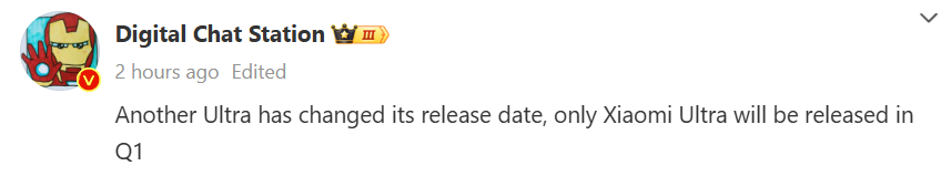 Today, reliable tipster Digital Chat Station released the above Weibo post to reveal that the Xiaomi 15 Ultra is the “Ultra” that will launch in the first quarter of this year. Without specifying the exact name, the tipster claimed that another Ultra, which was expected to launch in Q1, has changed its release date. He could be talking about the Find X8 Ultra, which now appears to be rescheduled to launch in Q2.