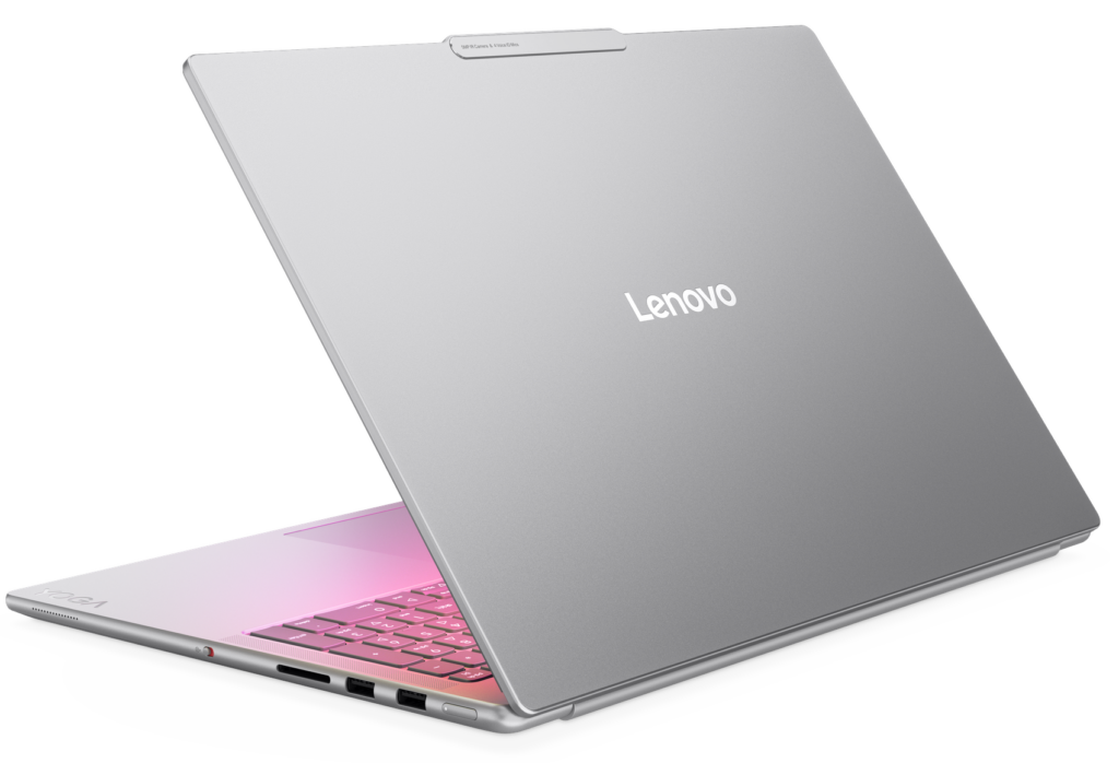 The Yoga Pro 9i Aura Edition includes a 5MP webcam for high-quality video calls and a six-speaker Dolby Atmos system (2x 2W tweeters and 4x 2W woofers) for immersive audio.