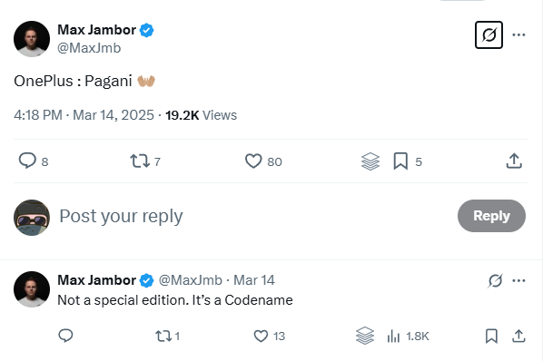 Tipster Max Jambor recently shared the codename “OnePlus Pagani” on X, speculated to be a foldable smartphone. While it could be the internal codename for the OnePlus Open 2, this seems unlikely since OnePlus has officially confirmed that the Open 2 will not be launching in 2025.