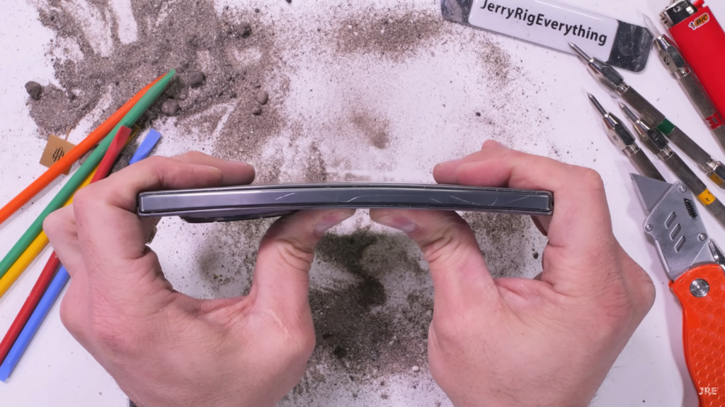The aluminum middle frame, glass-protected outer display, and soft inner display handle the scratch test just as you’d expect: the inner screen starts scratching at level 2 of the Mohs scale of hardness while the outer display starts scratching at level 6.