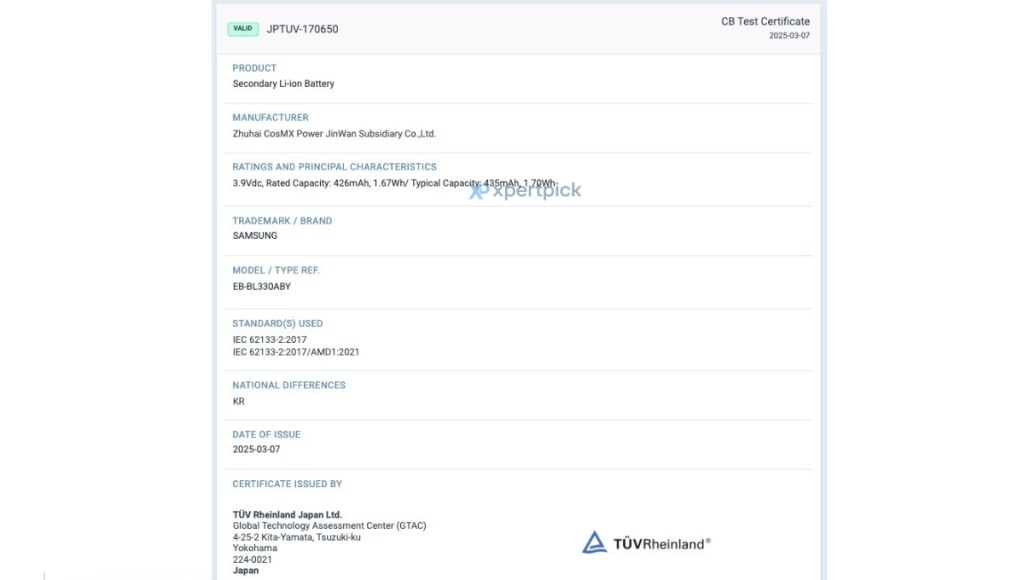 Two battery models—EB-BL330ABY and EB-BL505ABY—were spotted in SafetyKorea’s database, linked to devices with model numbers SM-L330 and SM-L505. These are believed to belong to the Galaxy Watch 8 and Galaxy Watch 8 Classic.