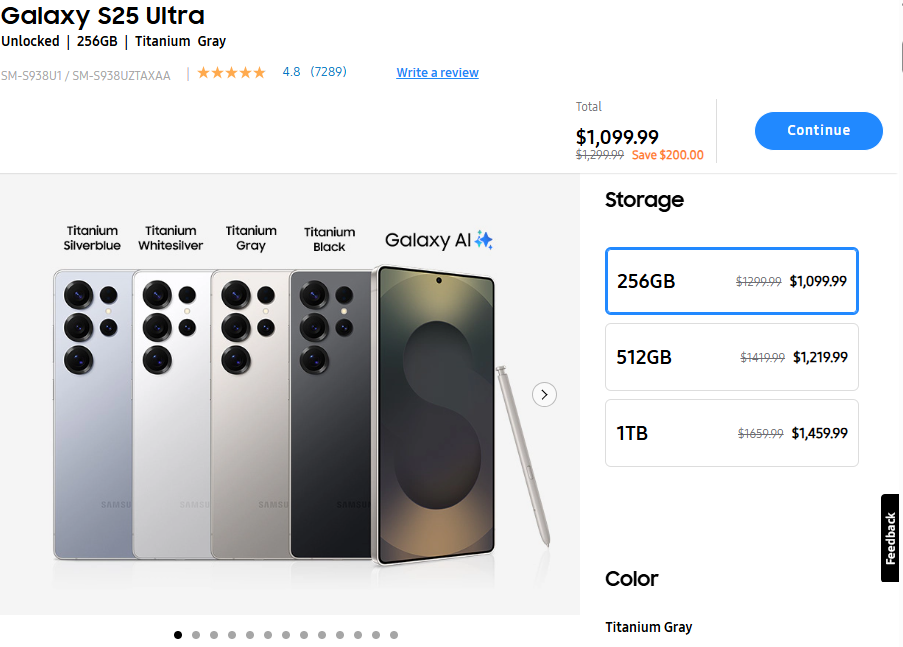 The catch? It’s a no-strings-attached offer, but it won’t last forever—Samsung is known for these fleeting discounts. Beyond this $200 saving, there’s some extra benefit as well: sign up for a Samsung Care+ monthly plan, and the first three months are free. Newbies get three months of Peacock Premium, six months of Gemini Advanced, and 2TB of cloud storage—sweet perks to sweeten the deal. Plus, bundle a wearable like the Galaxy Buds 3 (10% off), Buds 3 Pro (41% off), Watch 7 (26% off), or Watch Ultra (48% off) for even more savings. The S25 Ultra comes in seven colors, three exclusive online, and the discount applies across all.
