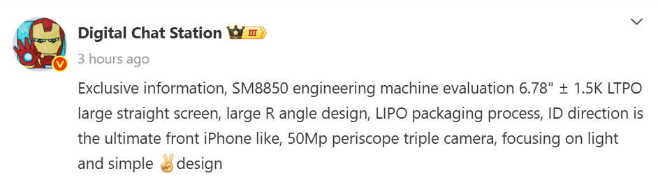 In a recent Weibo post, popular tipster Digital Chat Station revealed that a new smartphone prototype powered by the Snapdragon 8 Elite 2 (SM8850) chip is currently undergoing internal testing. Though not explicitly named, the device is widely believed to be the upcoming OnePlus 15. The leak outlines key display and camera specifications that suggest a shift in design philosophy for OnePlus’s next flagship.