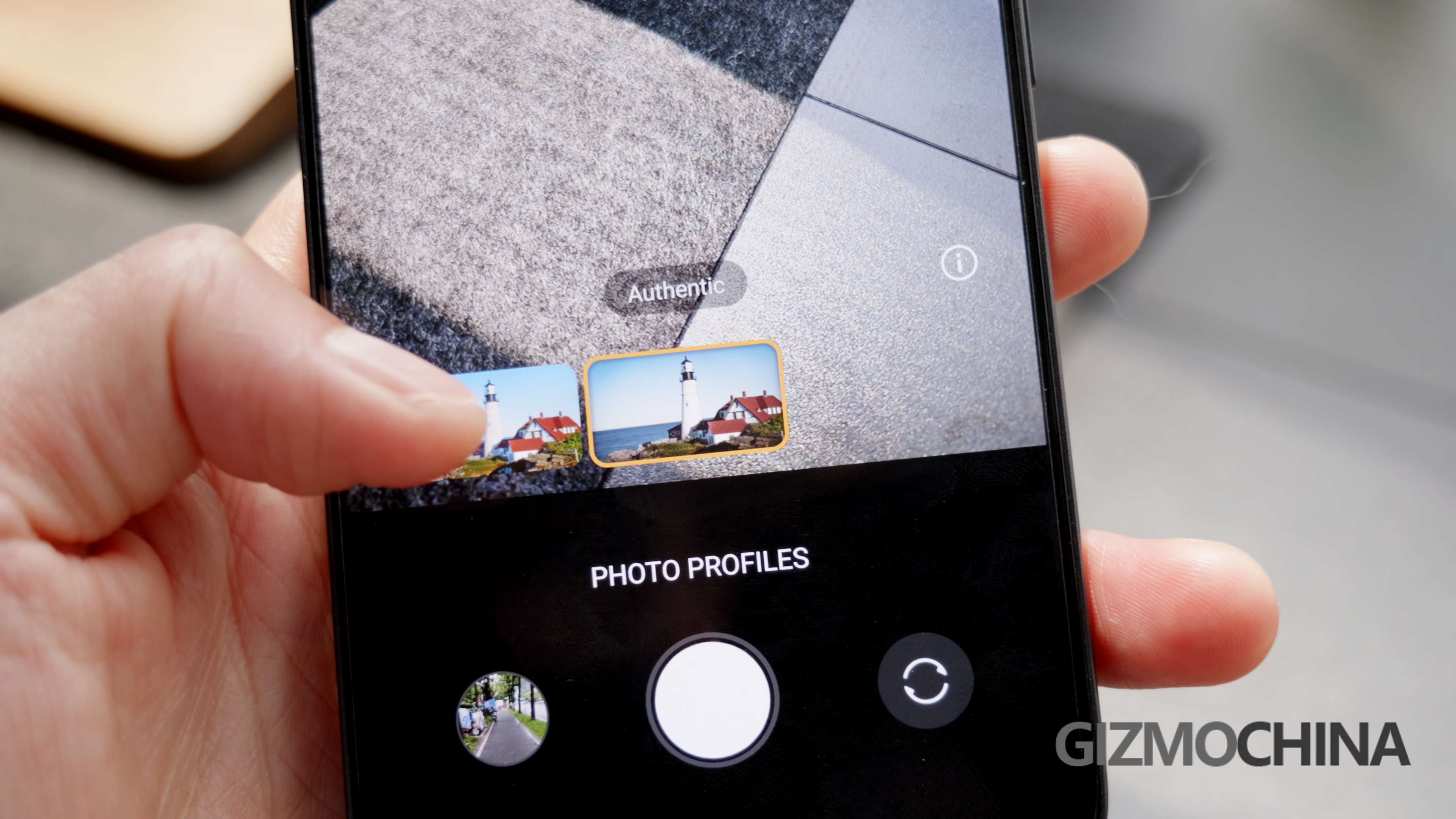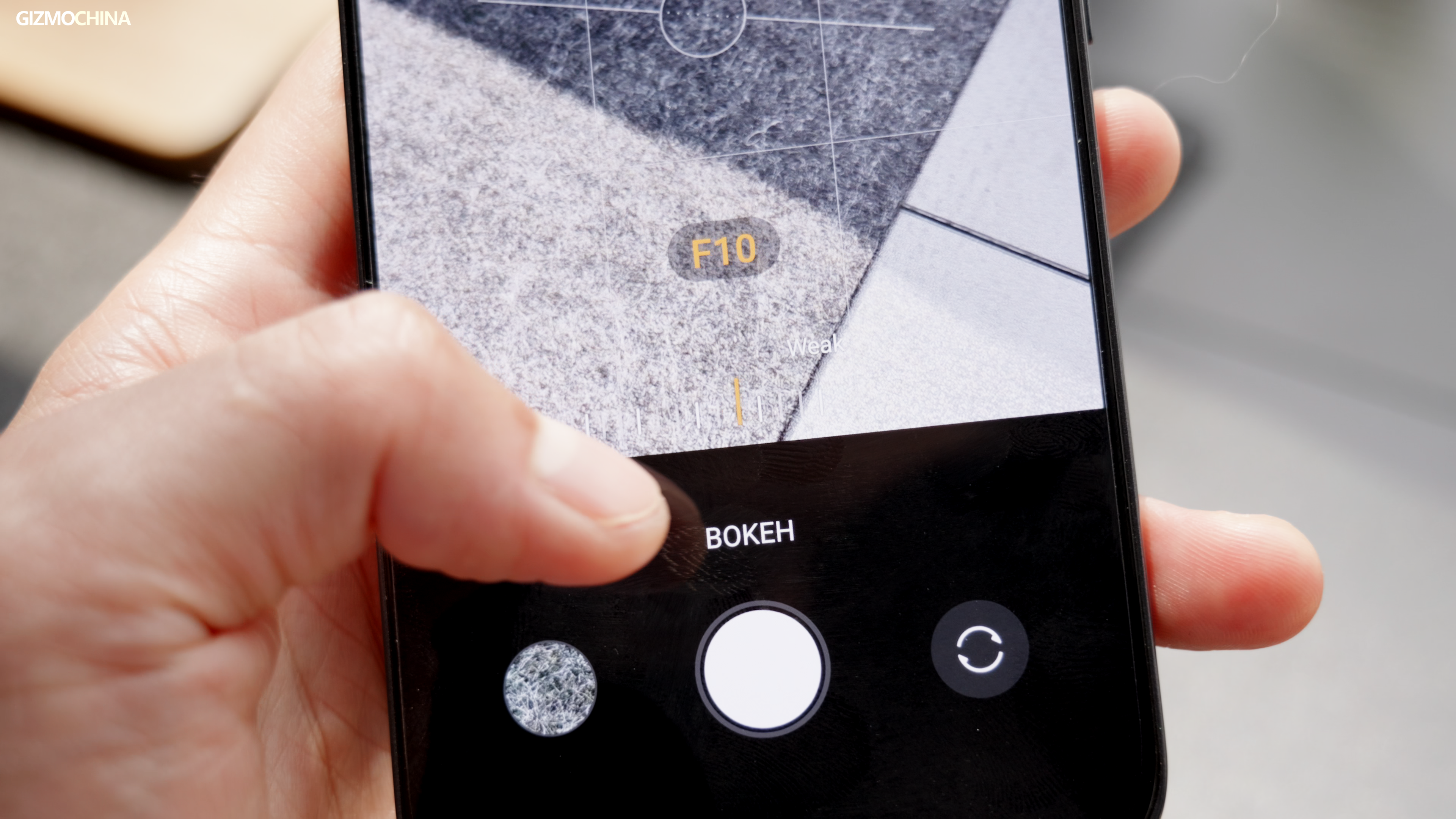 At the portrait mode, it allows you to adjust the bokeh, from F1.2 to F16, so you can choose to have a plain portrait photo, or make the people more stands out.