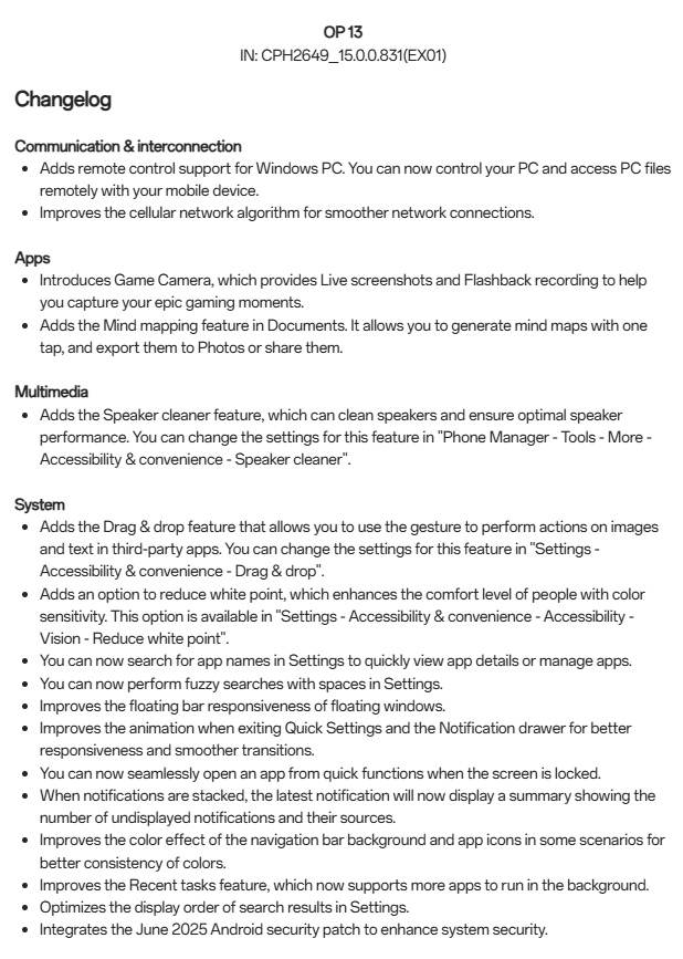 OnePlus has started rolling out the OxygenOS 15.0.0.831 update for the OnePlus 13 in India. The update is being released in batches, with a broader rollout expected in the coming days. The build version is CPH2649_15.0.0.831(EX01).
