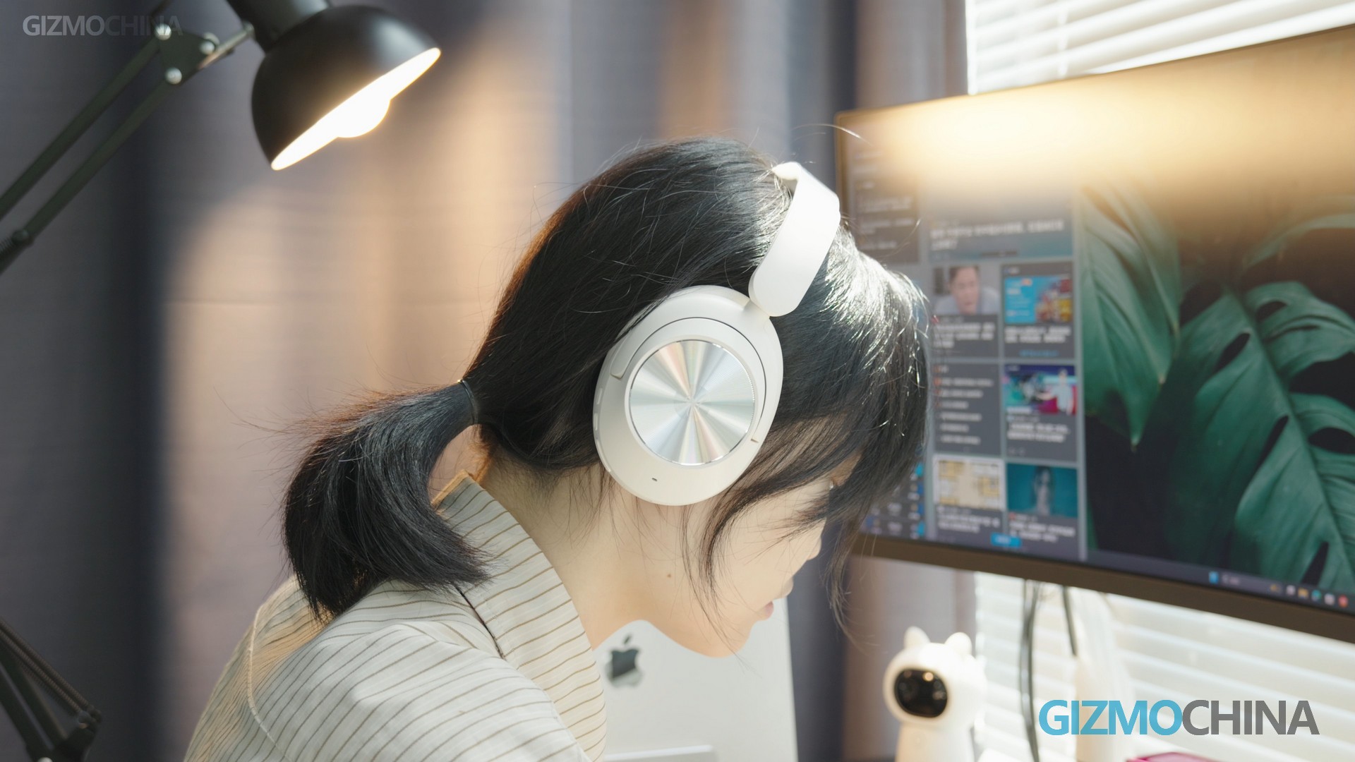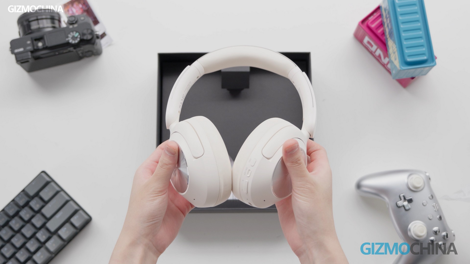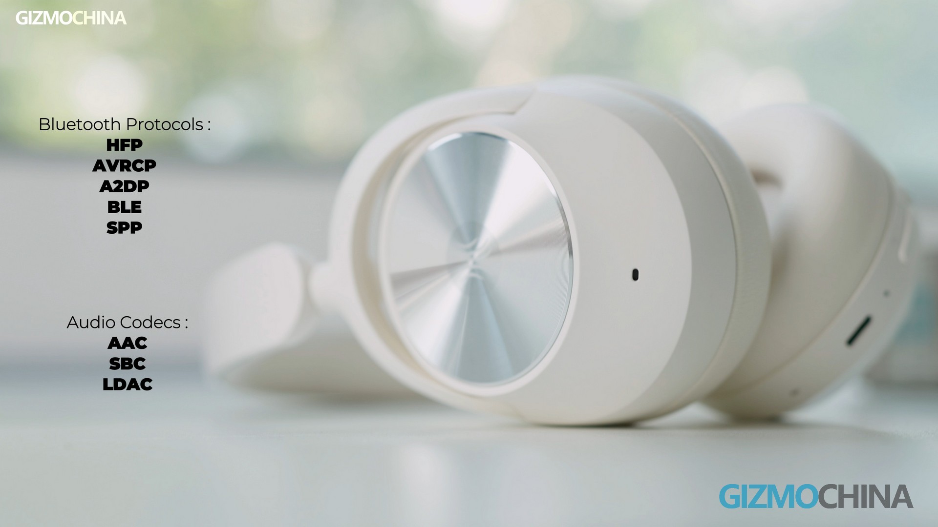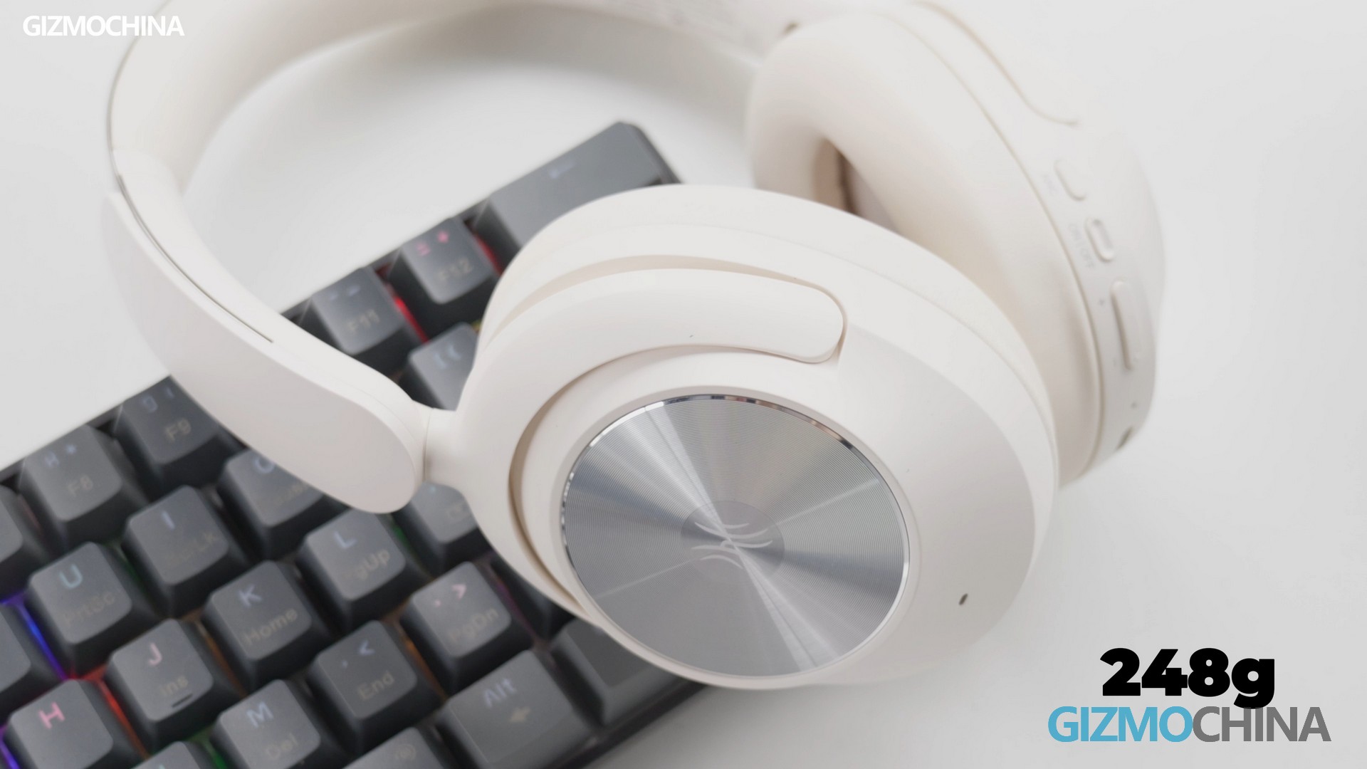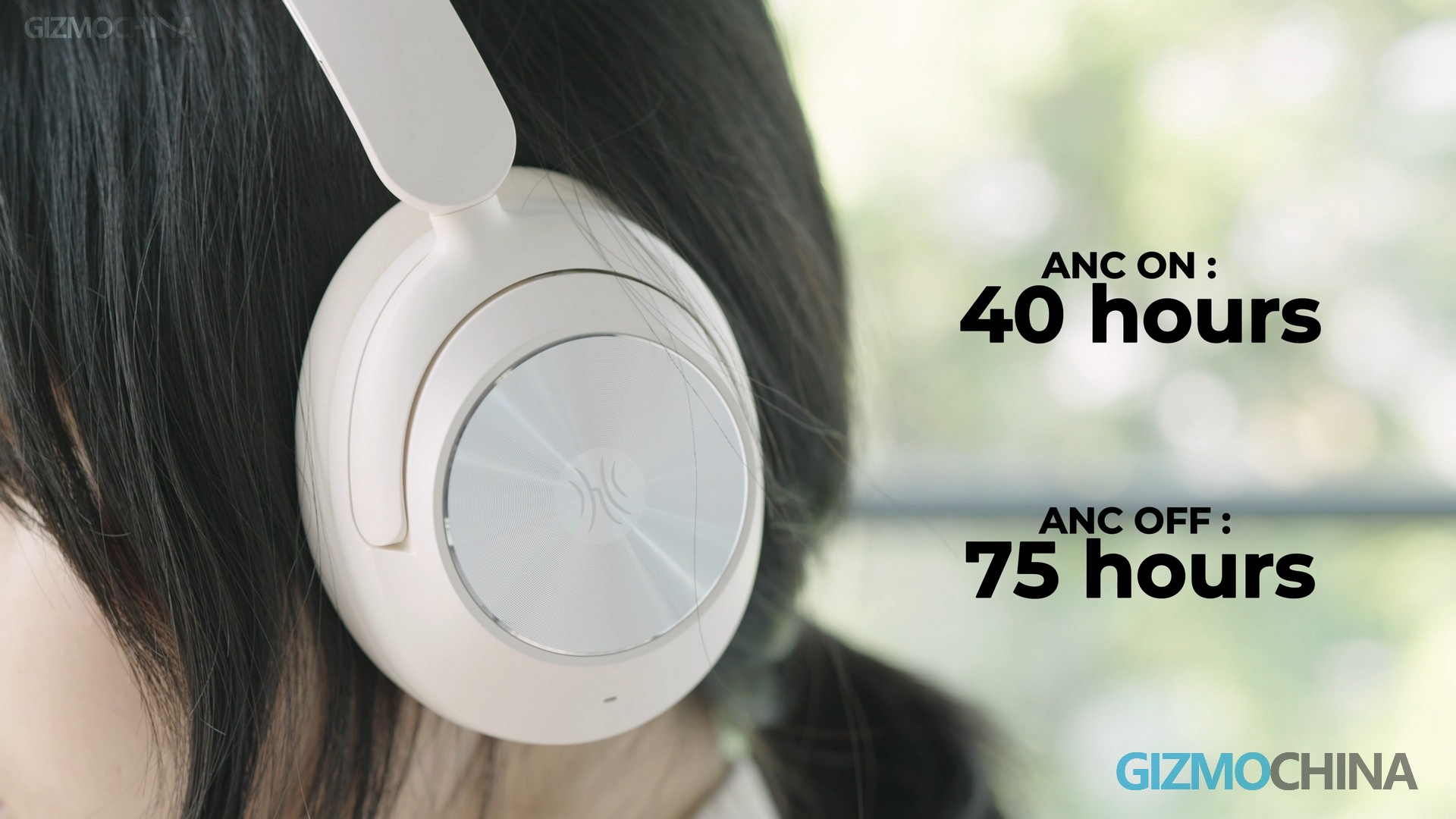 This headphone is in a slightly warm white, with a simple and modern design. The ear cup is relatively large, providing good sound insulation and wearing comfort. And the headband is adjustable. The metal-like cover of the ear cup has a circular decoration with the logo. The ear cup appears to be made of memory foam or protein leather, very soft, and offers a good fit. It doesn’t press on the temples, even for those who wear glasses, wearing comfort is excellent even after long-term use. They are lightweight, approximately 248g, feel no awful pressure, and consequently, are very comfortable.